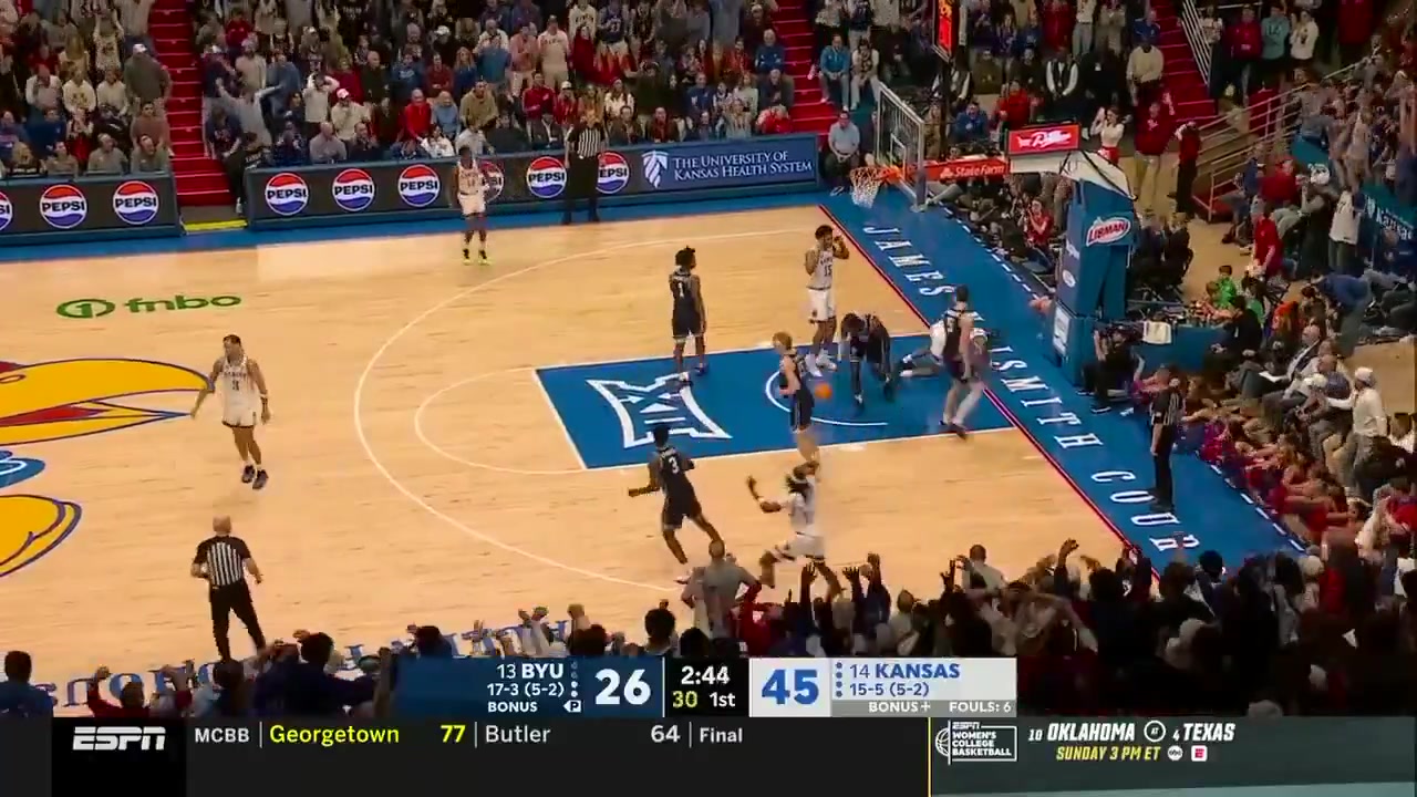 02月01日讯 NCAA常规赛焦点战,堪萨斯大学在主场以90-82击败杨百翰大学,取得五连胜。