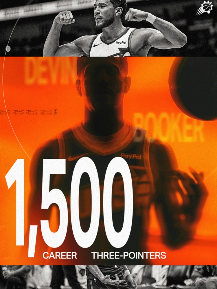 3月4日讯 NBA常规赛,太阳对阵国王,布克已经投进3记三分。