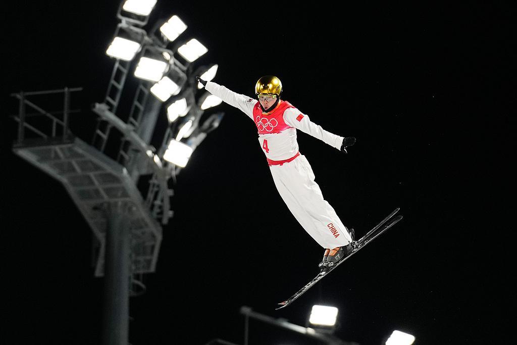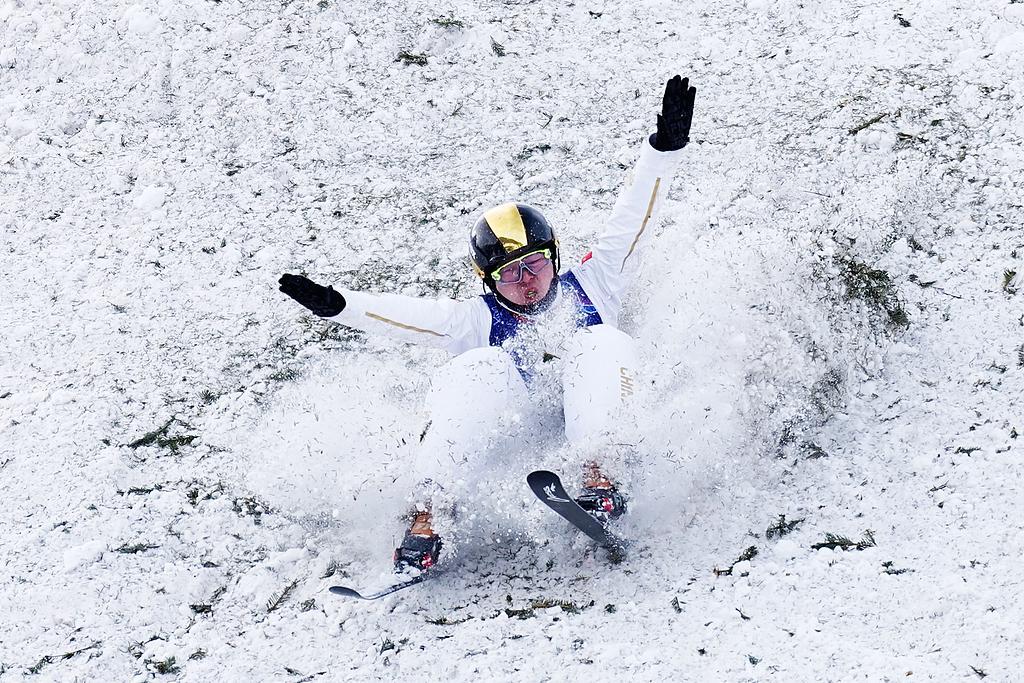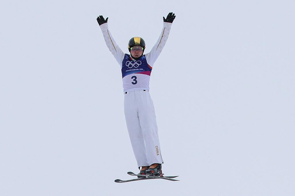 北京时间2月20日,米兰冬奥会自由式滑雪男子空中技巧决赛第二轮,齐广璞纵身一跃,重重落在雪地之上。